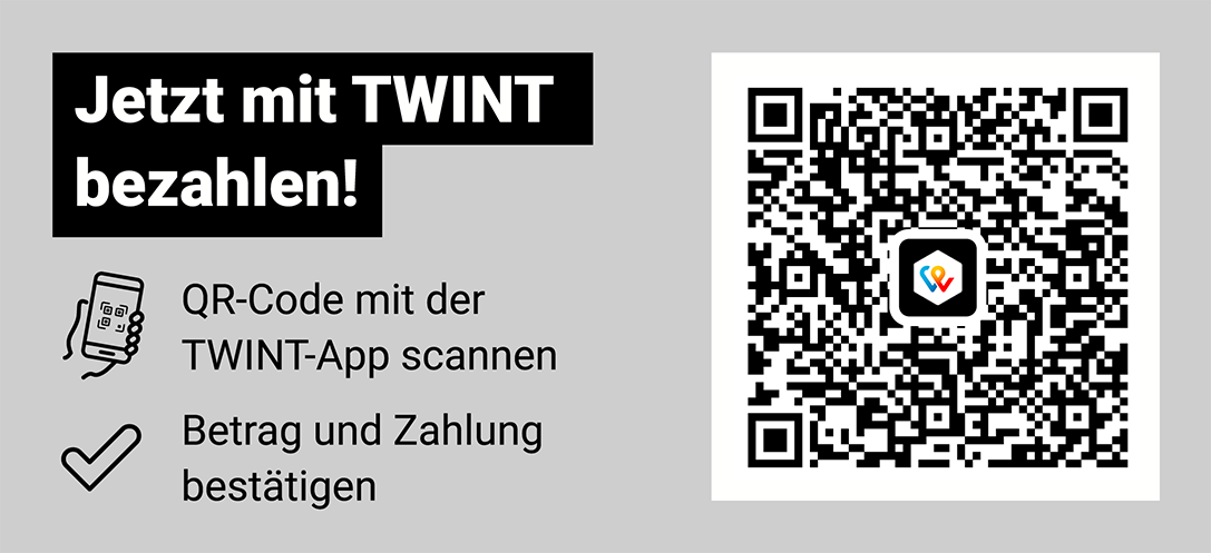 Wir bieten neu auch die Bezahlung des Startgeldes per TWINT an, die Kommission (2.5%) geht zu Lasten des Zahlenden und ist im QR-Code bereits berücksichtigt.